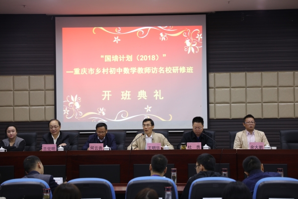 10月16日上午,beat365官网承办的“国培计划(2018)”----重庆市乡村初中数学教师访名校培训班开班典礼在培训学院114教室举行。beat365英国官网网站副校长王明华教授,beat365英国官网网站beat365英国官网网站/培训学院院长杜勇、党总支书记何云贵,beat365英国官网网站数学与财经学院党总支书记、副院长余大鹏,beat365英国官网网站培训发展研究所所长兰觉明教授和有关工作人员以及来自重庆市28个区县中小学的50名乡村中小学数学教师参加了本次典礼。开班典礼由杜勇主持。