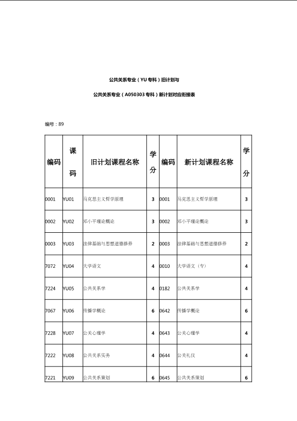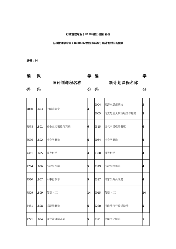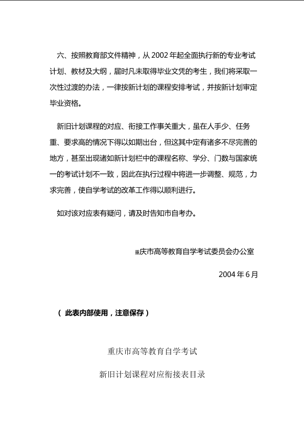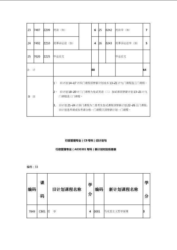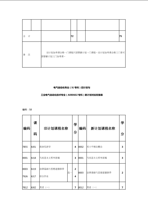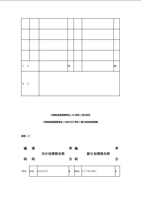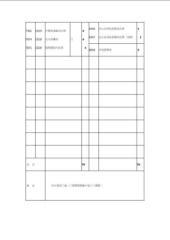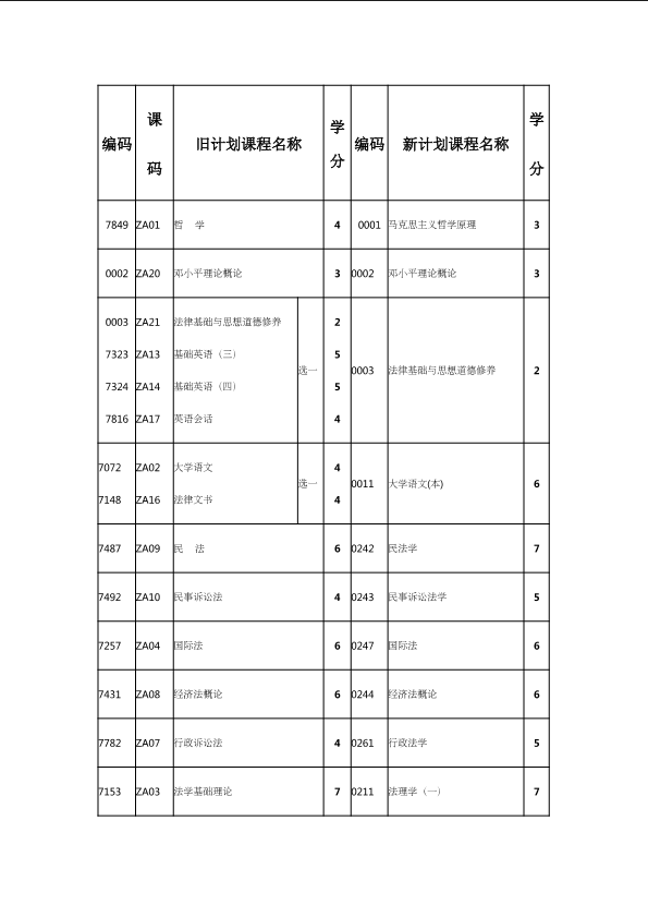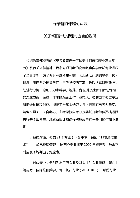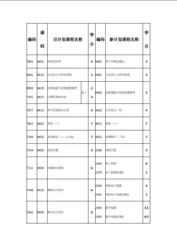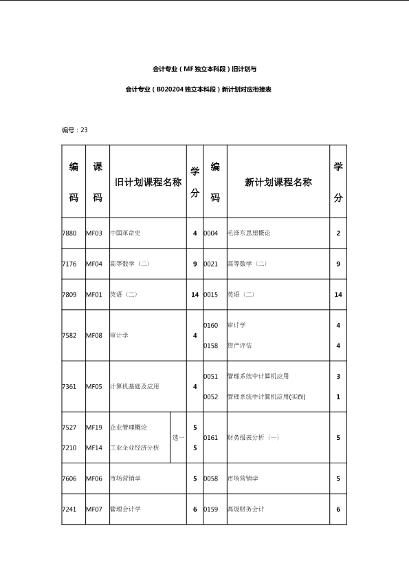 自考新旧课程对照表