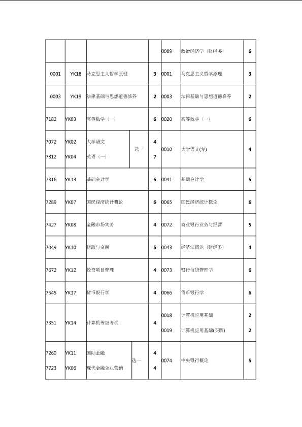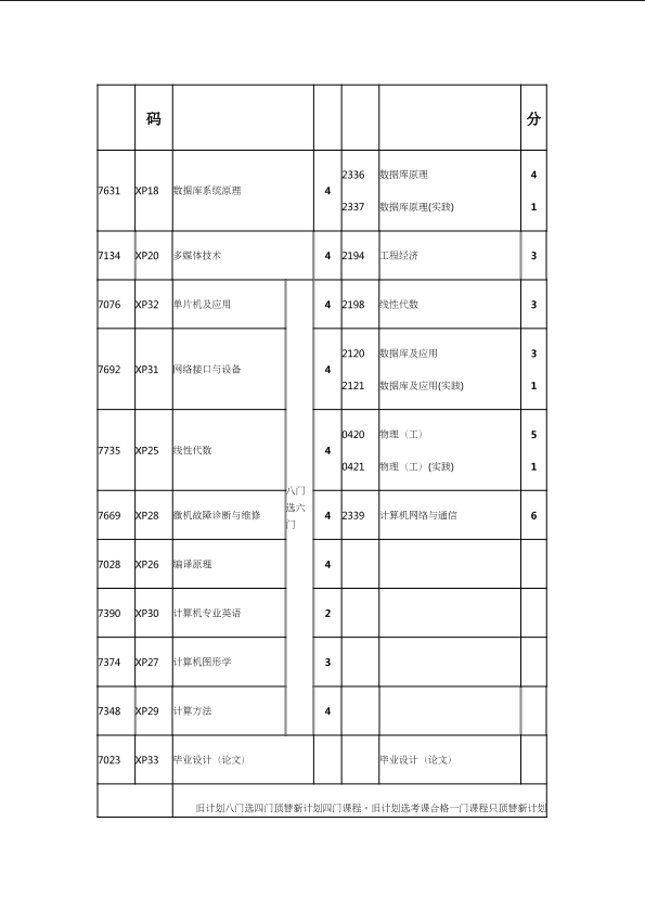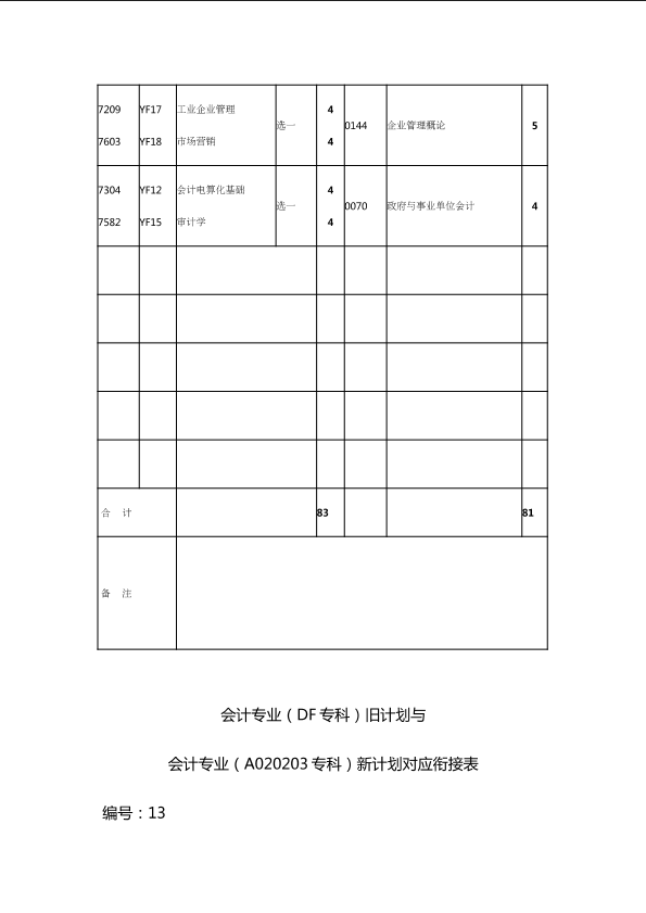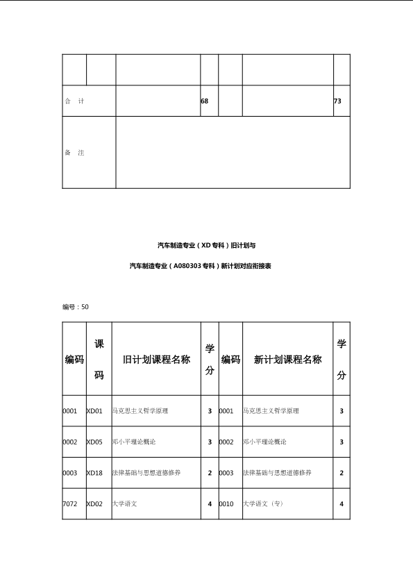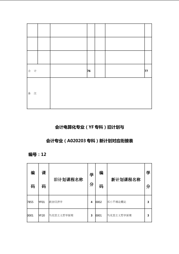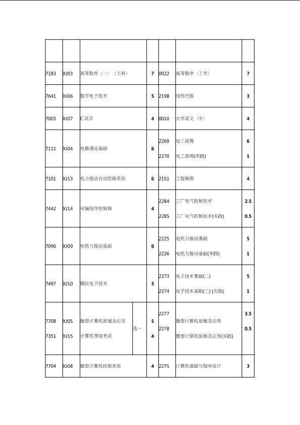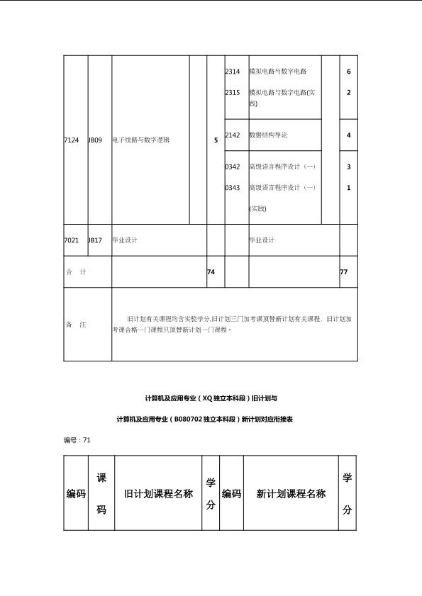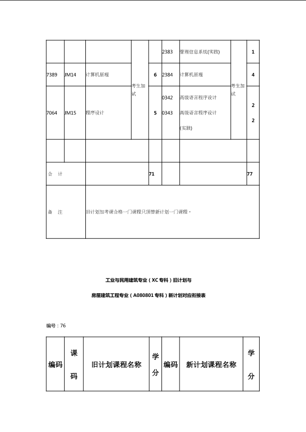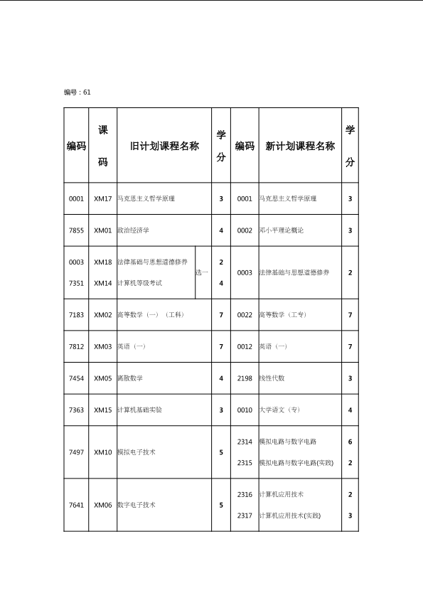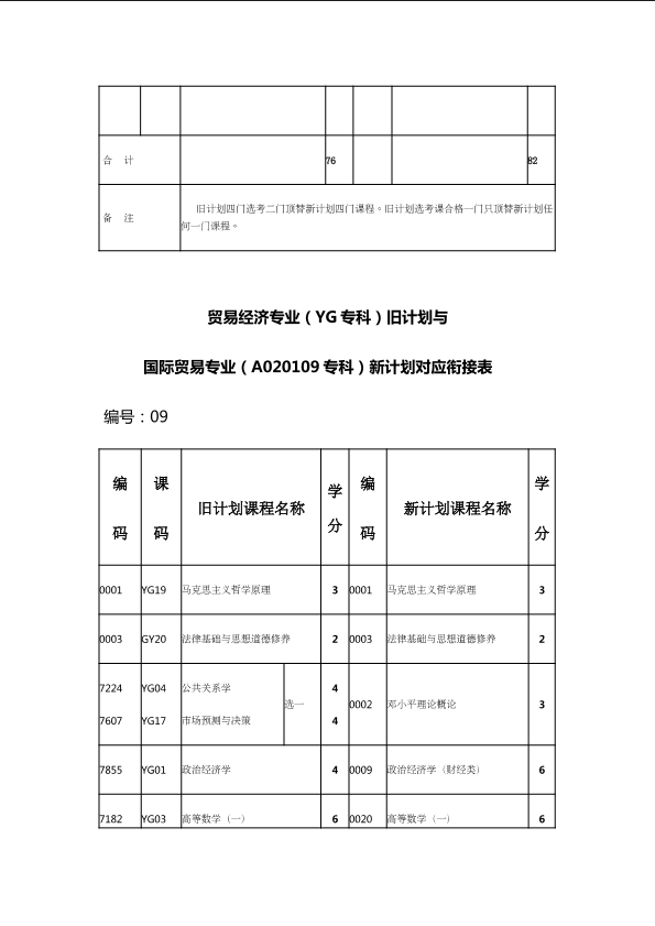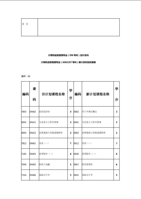 自考新旧课程对照表