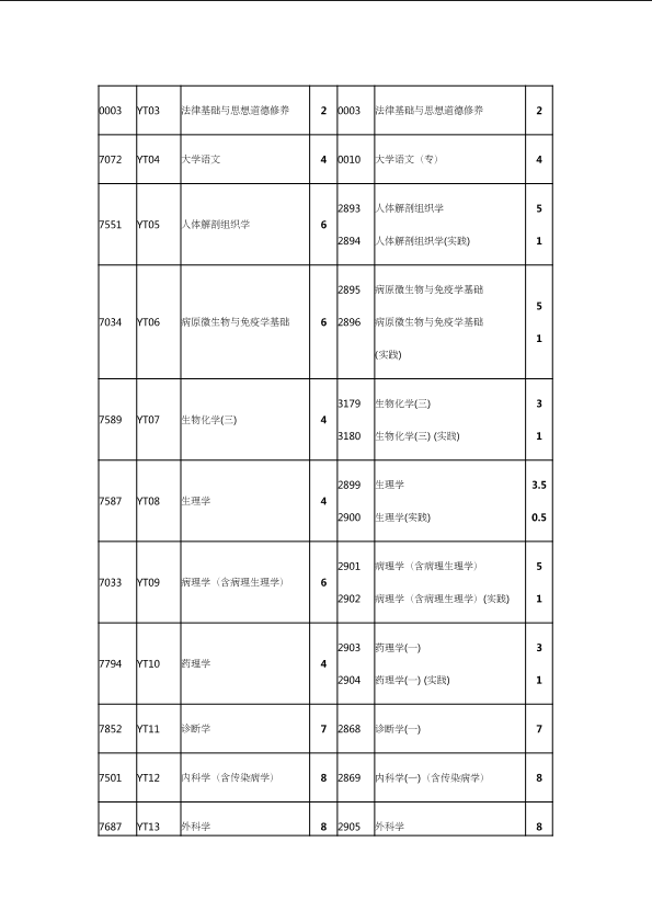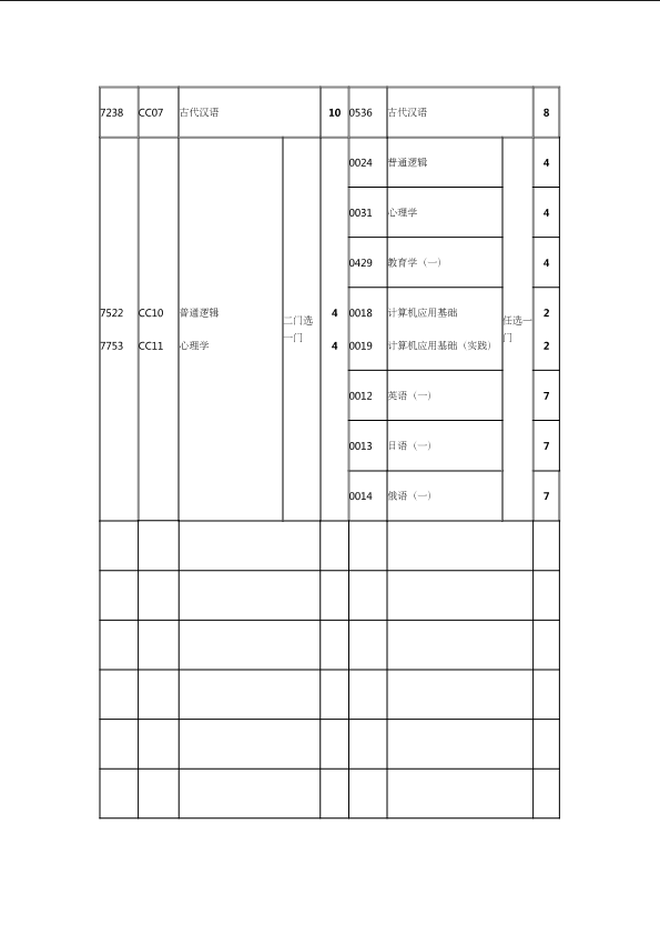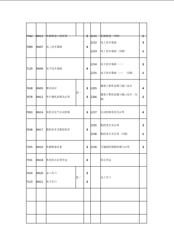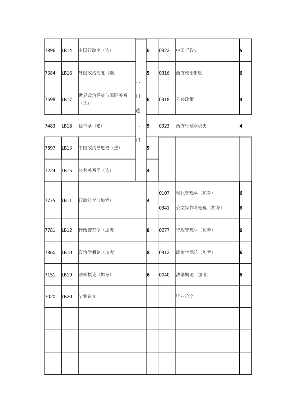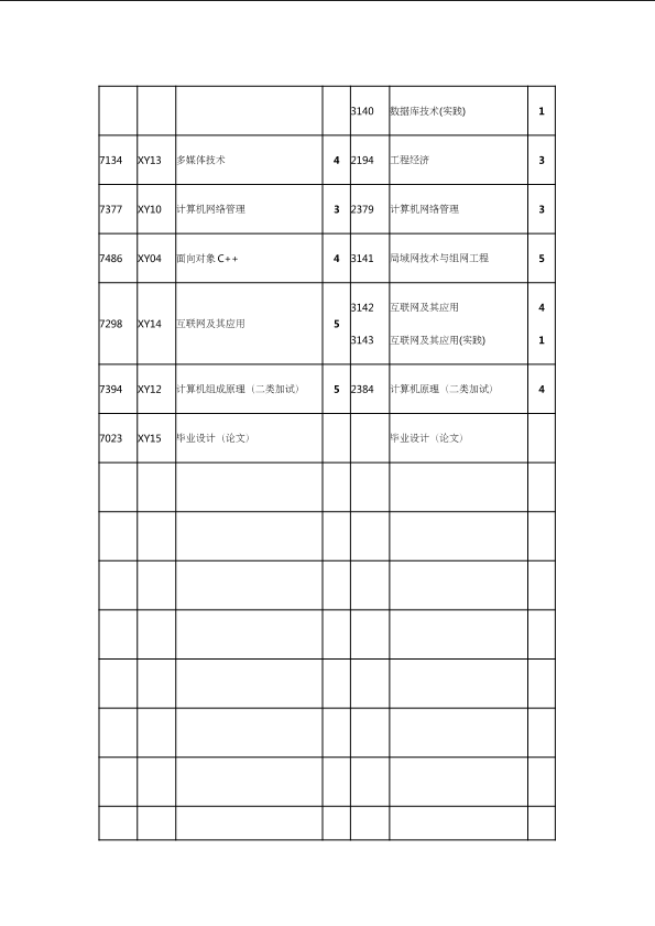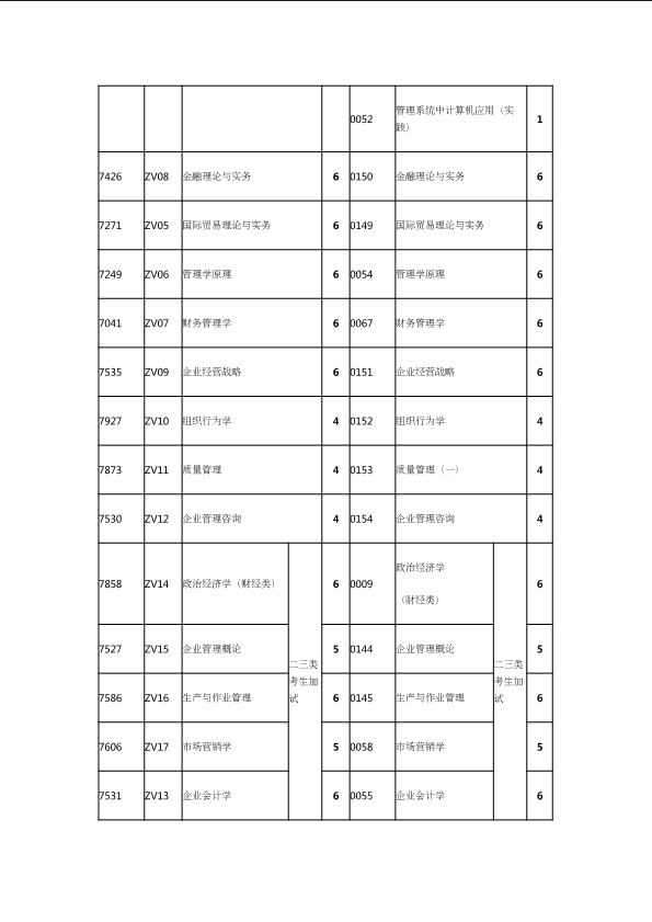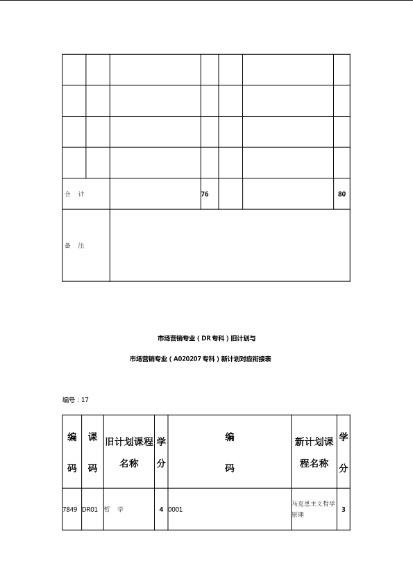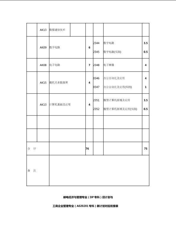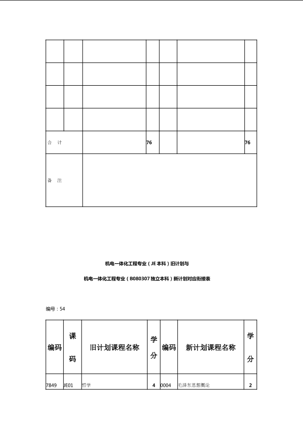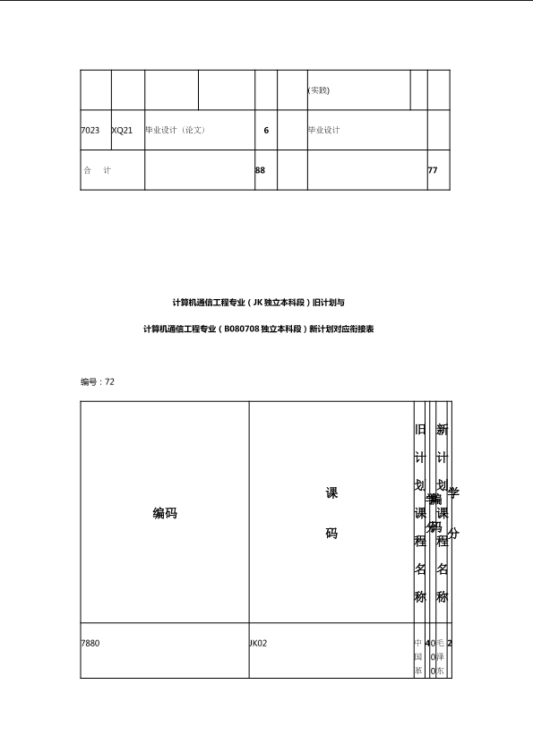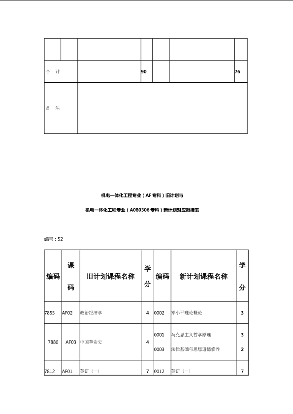 自考新旧课程对照表