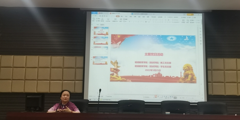 5月25日下午,beat365英国官网网站(培训学院)党总支在志仁楼114教室开展5月主题党日活动。