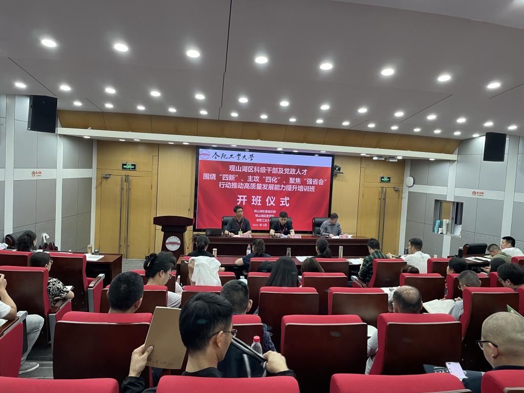 为了在新形势下培养造就一支学习能力佳、工作水平高和执行意识强的高素质专业化优秀人才队伍,推进围绕“四新”、主攻“四化”、聚焦“强省会”行动,推动观山湖区高质量发展,中共贵阳市观山湖区委组织部委托区委党校在我院组织观山湖区科级干部及党政人才围绕“四新”、主攻“四化 ”、聚焦“强省会”行动推动高质量发展能力提升培训班,顺利开班,本次培训为期7天,共50人参加。